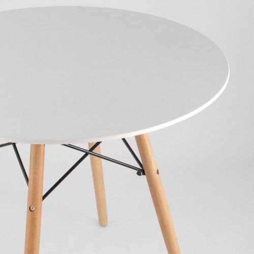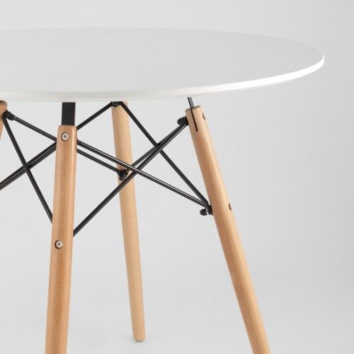 Дизайнерский стол «Eames», D-80 - простая, но тщательно продуманная модель, идеально подходит к интерьерам в стиле модерн, лофт и хай-тек. Столешница круглой формы Ø800 мм) выполнена из практичной МДФ-плиты с ножками из сочетания дерева и металла.